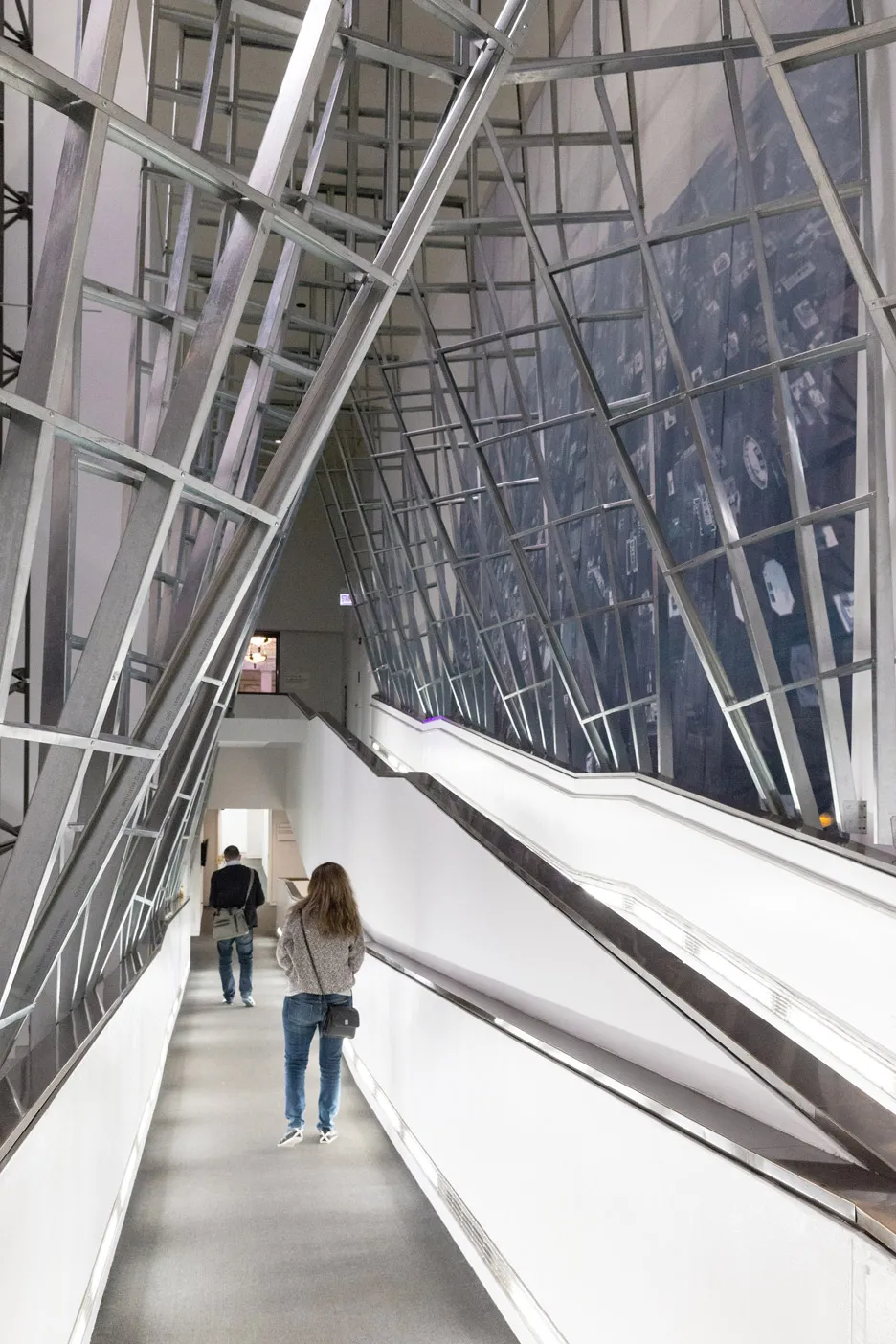 Каждый «портал» имеет уникальную форму и размер. Если смотреть с расстояния, вся конструкция увеличивает объемное присутствие пандуса. На одной из стен вдоль прохода расположен аэрофотоснимок Чикаго. По мере того, как посетитель двигается по пандусу, квадратные формы конструкции становятся своего рода картинными рамами, задавая темп и ритм движения и открывая как из окон виды сфотографированного города. Кроме ограниченного бюджета и сжатых сроков, еще одной из сложностей проекта стала необходимость отказаться от перекрывания пандуса на время строительного процесса, поскольку он является единственным вариантом перемещения между этажами для людей на колясках. Пандус нельзя было перекрывать в течение всего времени работы центра — поэтому строительство велось только ночью.