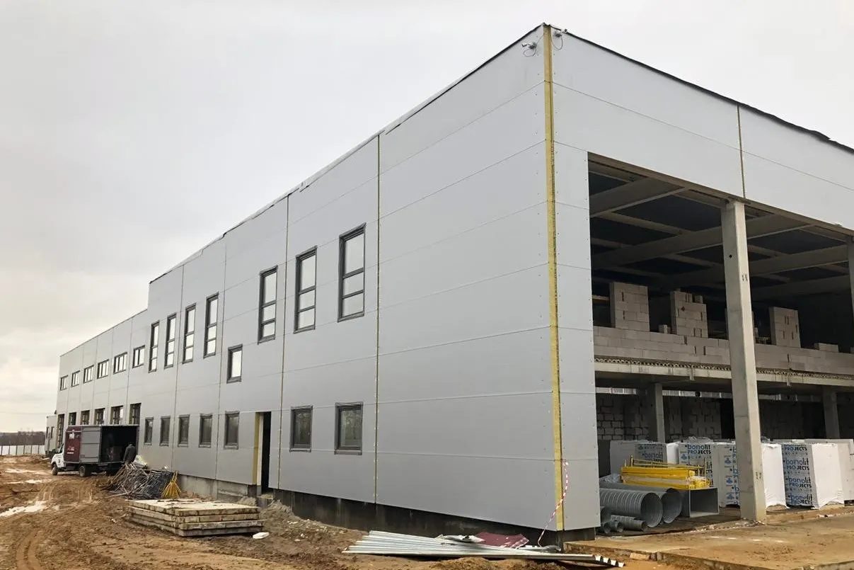 Компания «Ди Ферро» изготовила и поставила сэндвич-панели для строительства центра сервисного обслуживания постгарантийных грузовых автомобилей MAN TGS и TGX, которое ведется в Раменском районе Московской области. Для здания общей площадью 3 660 кв.м было произведено более 3300 кв.м панелей с обшивками толщиной 0,6 и 0,5 мм и глубоким усиленным замком по ГОСТ Z-LOCK+. По проекту панели предназначены для возведения внутренних и внешних стен здания. Помимо самих панелей в заказ также вошли крепежные элементы и герметик. Кроме изготовления и поставки самих панелей, специалисты инжинирингового центра «Ди Ферро» провели проверку раскладки панелей.