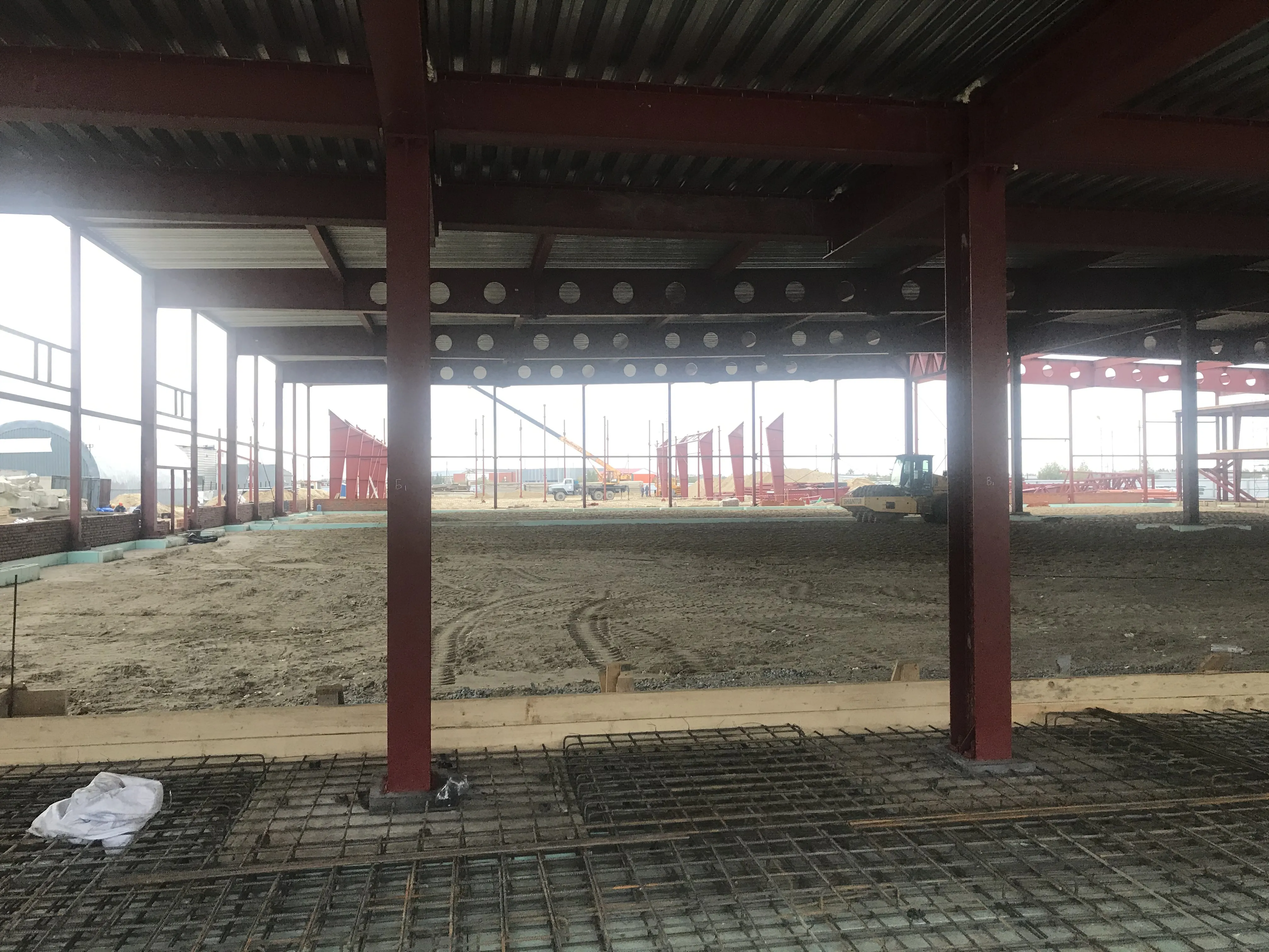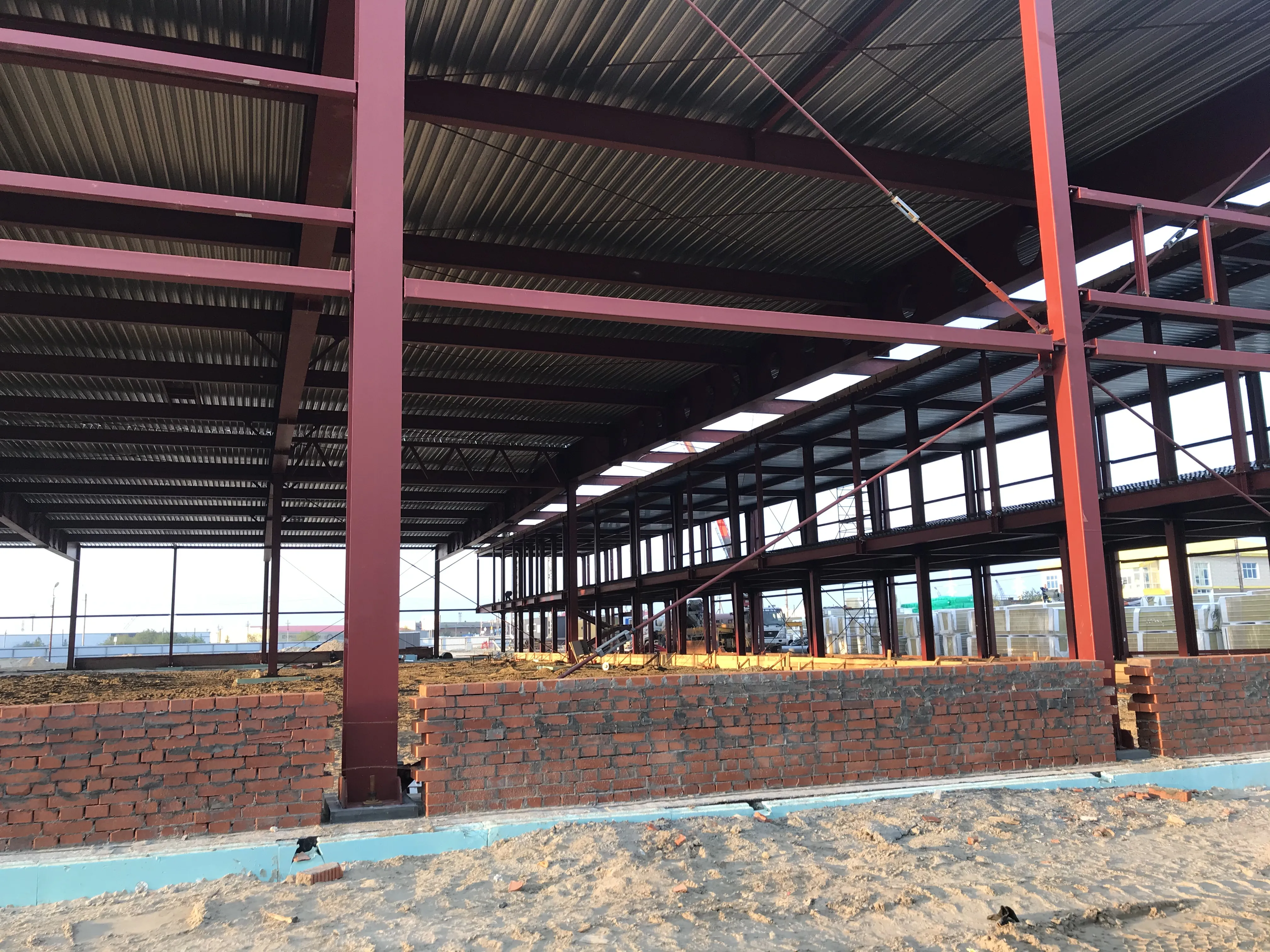 Проведены проектные работы и поставлены металлоконструкции, а также ограждающие конструкции для двух зданий:
