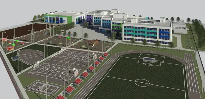 У школы будет переменная этажность — от 1 до 4 этажей. Она будет рассчитана на 1,1 тыс мест. Кроме учебных кабинетов, в школе необходимо создать два обеденных зала на 208 и 404 мест. Также надо предусмотреть два спортзала — один с тренажерами, а другой — для занятий гимнастикой. Будут также рекреационные зоны, медицинский блок, актовый зал на 770 мест с эстрадой, административно-служебные помещения и конференц-зал.
